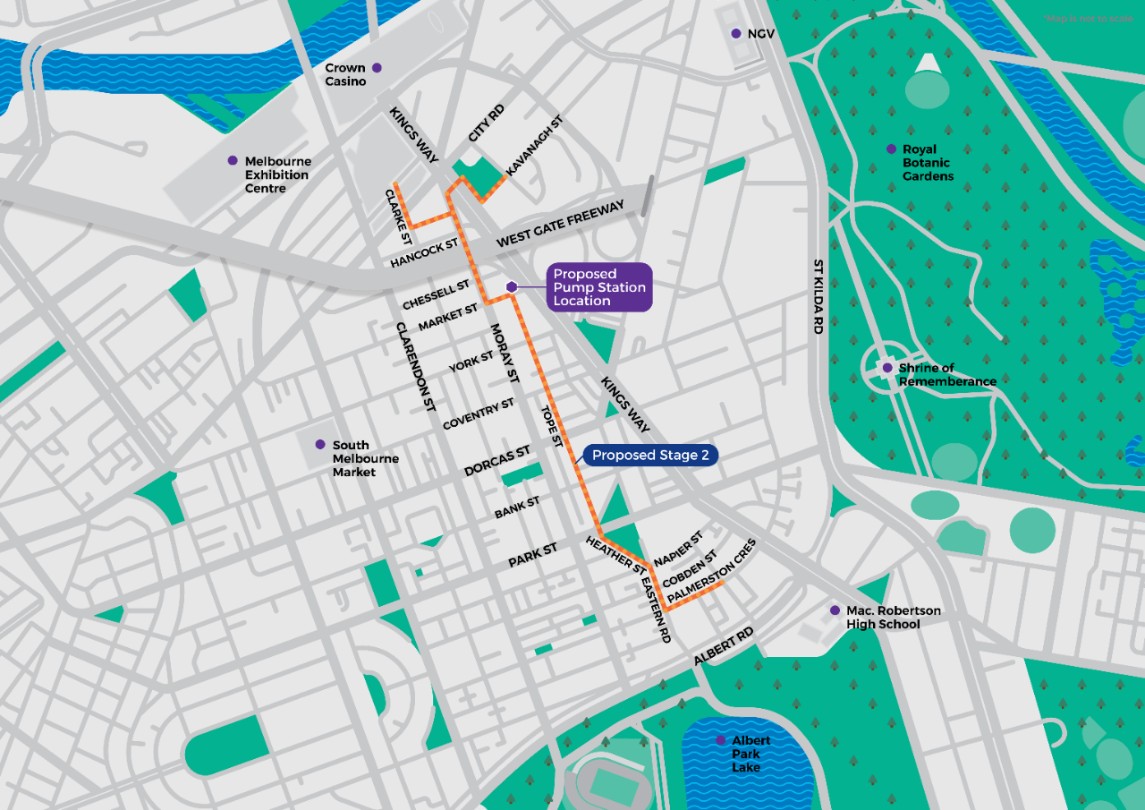South East Water will be installing a new sewer main in South Melbourne and Southbank as part of the South Melbourne Sewerage Upgrade.