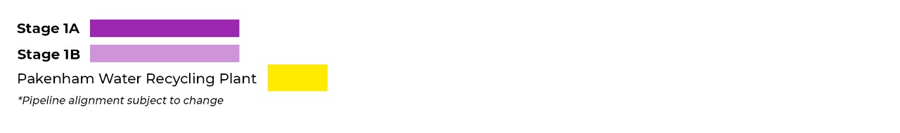 Stage 1A will supply local irrigators with Class A recycled water from our Pakenham Water Recycling Plant to Pakenham South and Cora Lynn. Stage 1B will extend the initial network into the Vervale, Catani, Bayles, Garfield and Iona areas. Refer to the map for Stage 1A and 1B areas.